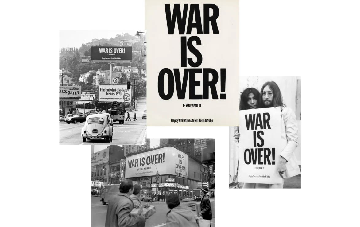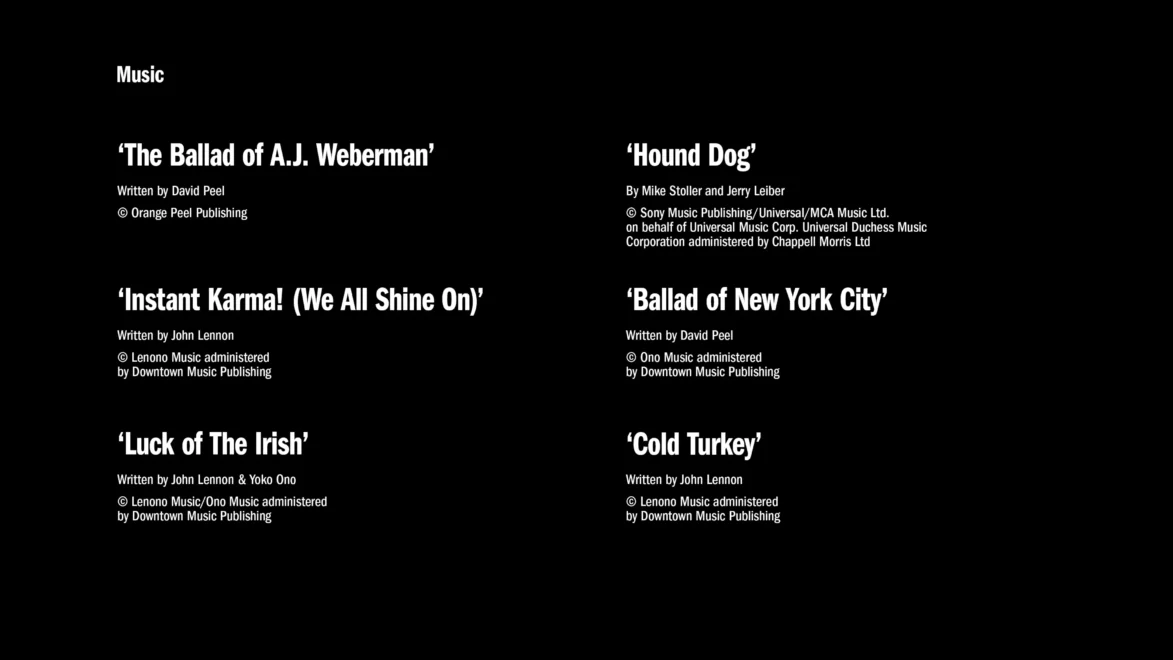 The typeface used throughout the film is Franklin Gothic – the same font used on Lennon and Ono’s famous 1969 War is Over poster.