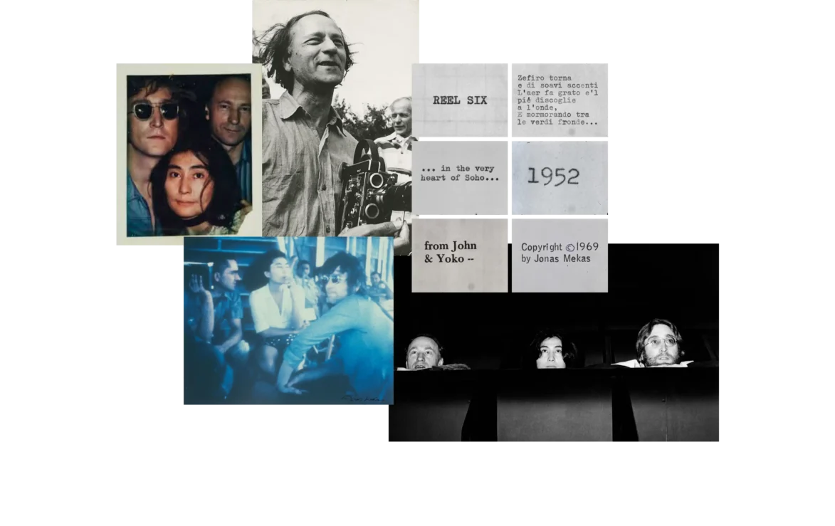 He was a close collaborator of Lennon and Ono’s. Mekas created captions for his films by typing sentences onto paper, sticking them to a wall and filming them.